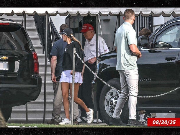 By Saturday morning, a photo appeared of Trump at a golf course in Virginia, taking much of the wind out of the swirling speculation. But as the day wore on, the theories ballooned again. Was this photo from this weekend, or 2019? Some were saying 2023. If that were true, his granddaughter would appear to be younger, wouldn’t she? Does it look like him? Where is the bruise? Is this a double? Doctored? AI? Why was Trump, a man who never carries anything, conspicuously lugging his own suit jacket on a hangar, like a soap actress trying to conceal a pregnancy behind a basket of laundry?